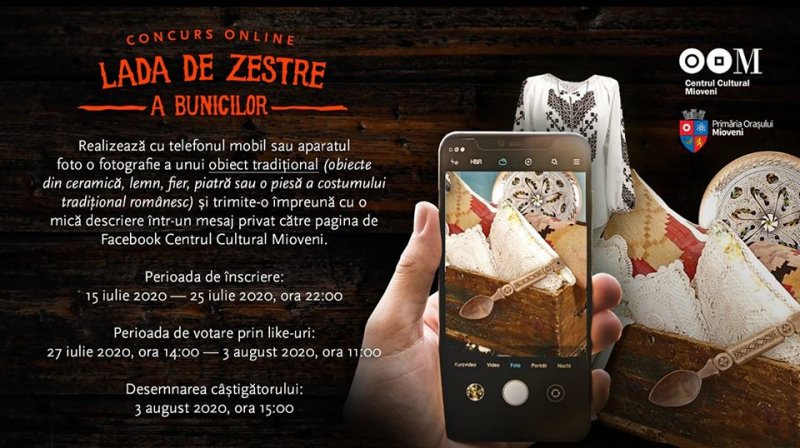 Ca urmare a amânării, pe moment, a Festivalului-Concurs Național de Folclor „Mioveni”, ediția a II-a, Centrul Cultural și Primăria orașului Mioveni lansează concursul online „Lada de zestre a bunicilor”, adresat iubitorilor de artă și cultură tradițională care doresc să contribuie la promovarea patrimoniului cultural cu obiecte pe care omul gospodar le are în casă sau le păstrează din trecutul familiei.