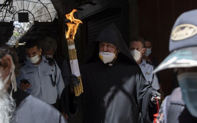 Din cauza restricţiilor impuse de pandemia de COVID-19, la ceremonia aprinderii Luminii Sfinte nu mai participă credincioşi, ci doar un grup restrâns de clerici.