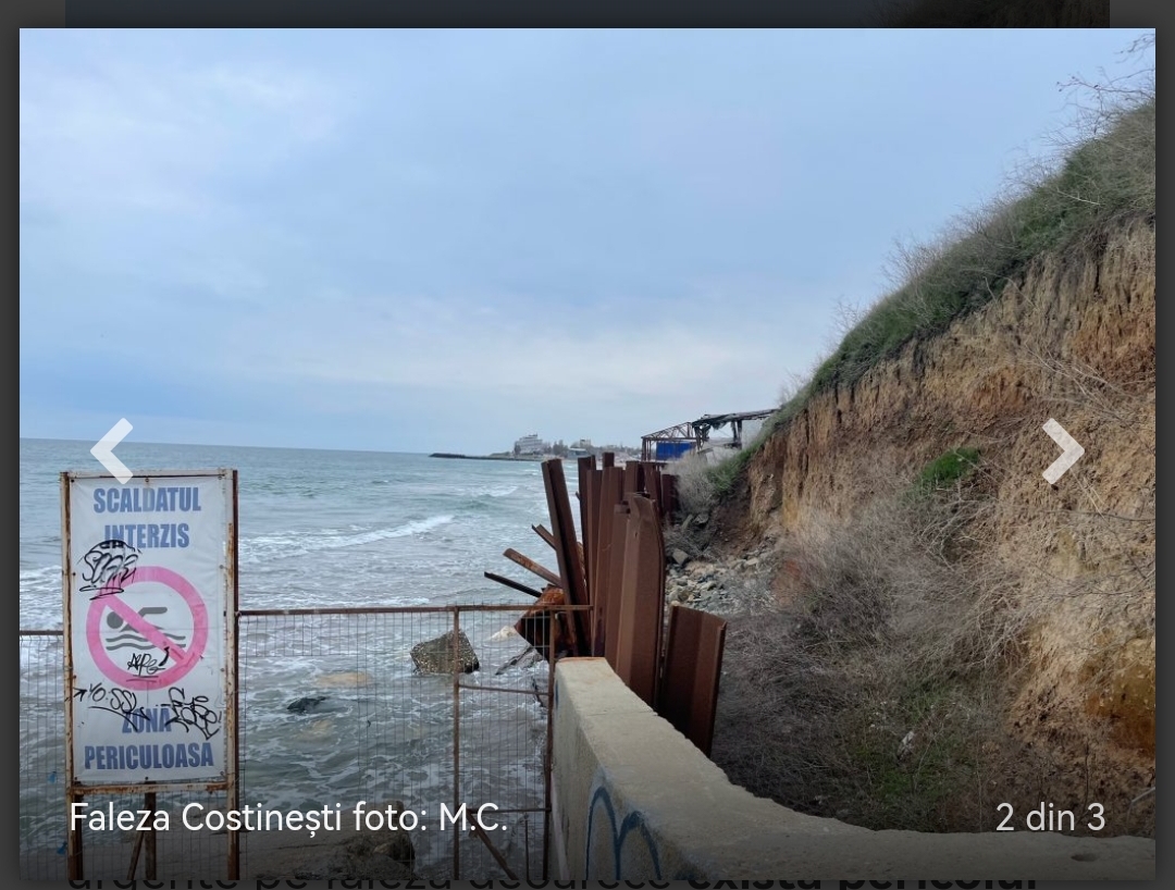A trecut un deceniu de la ultimele lucrări provizorii de stabilizare a țărmului mării în zona falezei Costinești. Starea acesteia s-a agravat extrem de mult în iarna 2018-2019, când fenomene hidrometeorologice complexe au dus la punerea în pericol a stabilității întregii faleze și a construcțiilor din zonă.