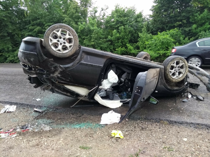 Mașină cu roțile în sus după un accident bizar! Autoturismul de proveniență străină, marca Opel s-a răsturnat pe DN 73, în urma unui impact cu un alt autoturism.