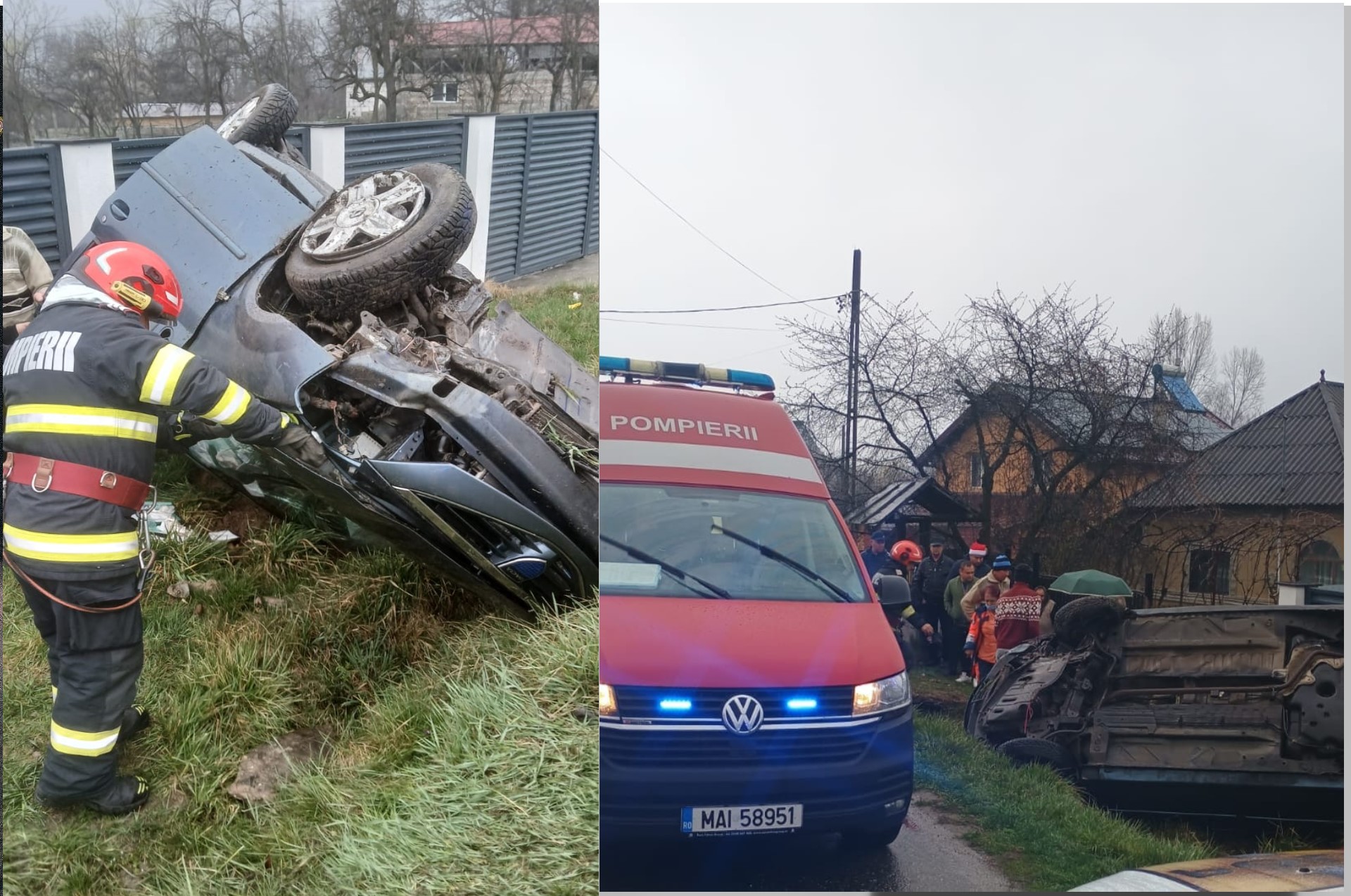 Mașină răsturnată în șanț. Minori răniți duși la spital de urgență. Un accident rutier s-a produs în comuna Vlădești, în care, din primele informații, un autoturism s-ar fi răsturnat.