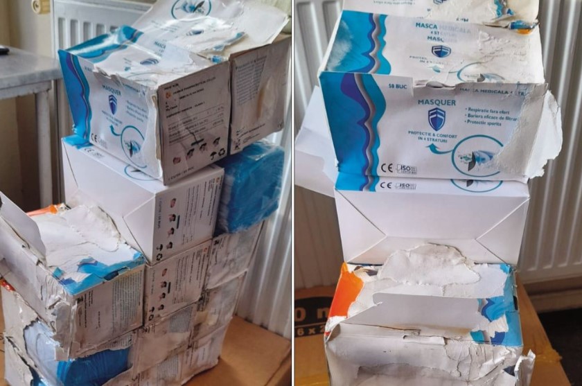 Probabil dispozitivele de protecție au zăcut prin cine știe ce depozite ori containere inundate și produsele au fost afectate. O parte a personalului medical a ripostat atunci când a văzut măștile mucegăite.