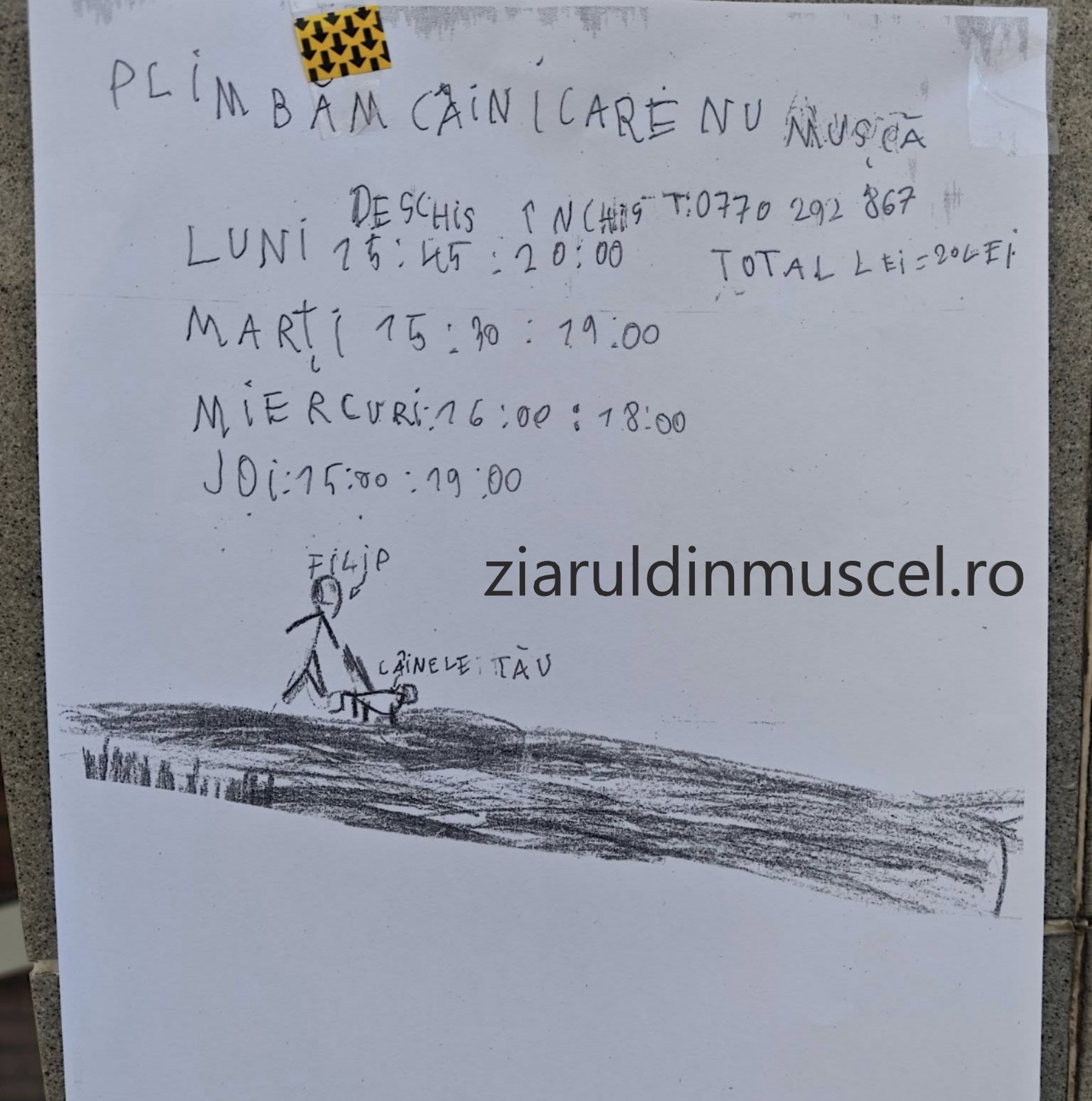Micul antreprenor cu inimă mare: Filip, 10 ani, și clienții lui patrupede. Anunțul care a stârnit val de aprecieri în social media. Un anunț scris de mână, afișat lângă un magazin din cartierul Găvana, a stârnit zâmbete și reacții pozitive după ce a fost postat într-un grup de Facebook.