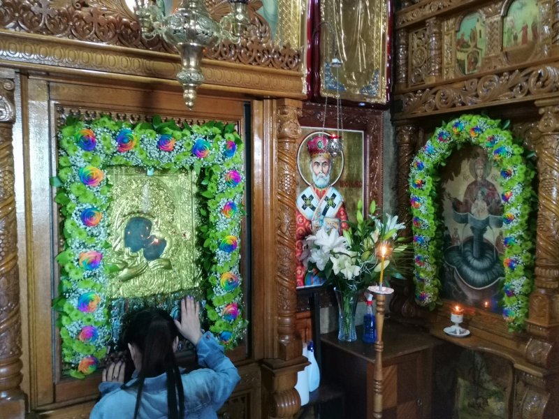 Icoanele cu Maica Domnului dedicate acestei sărbători au fost împodobite cu trandafiri multicolori.