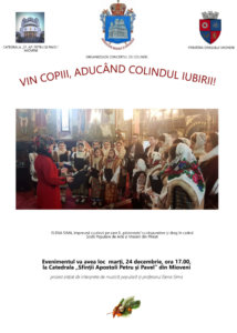 Marti, 24 decembrie, de la ora 17.00, Catedrala ”Sfinții  Apostoli Petru și Pavel” din Mioveni va găzdui concertul anual de colinde “ VIN COPIII, ADUCÂND COLINDUL IUBIRII!”.