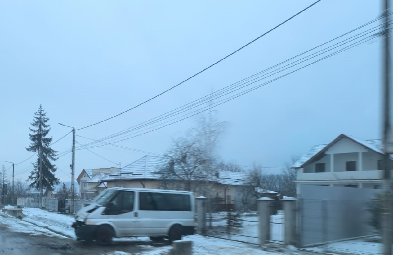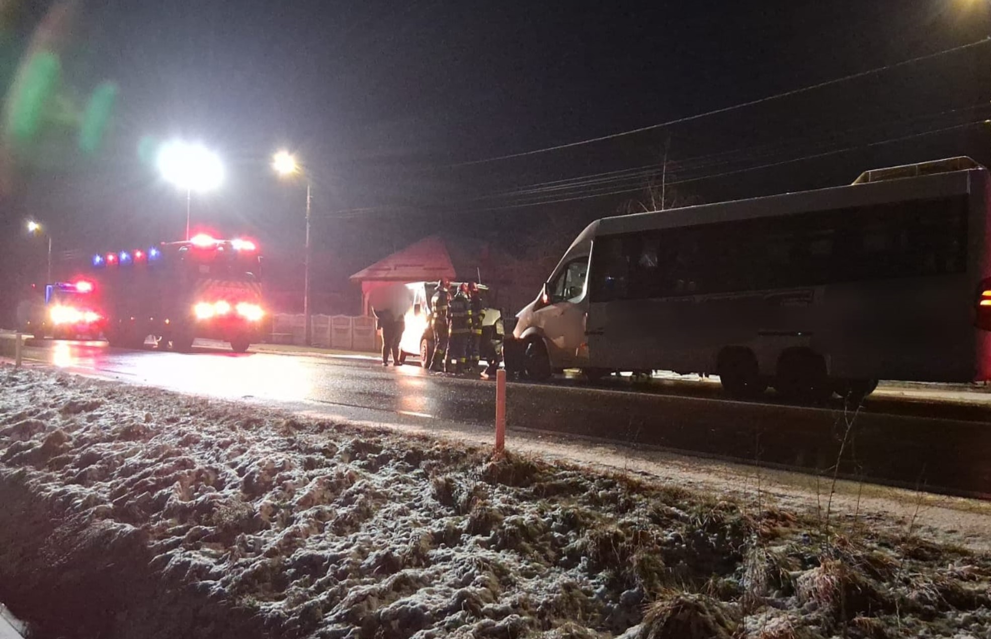 Momente de panică la Stâlpeni: microbuz plin cu pasageri, lovit de o autoutilitară.
