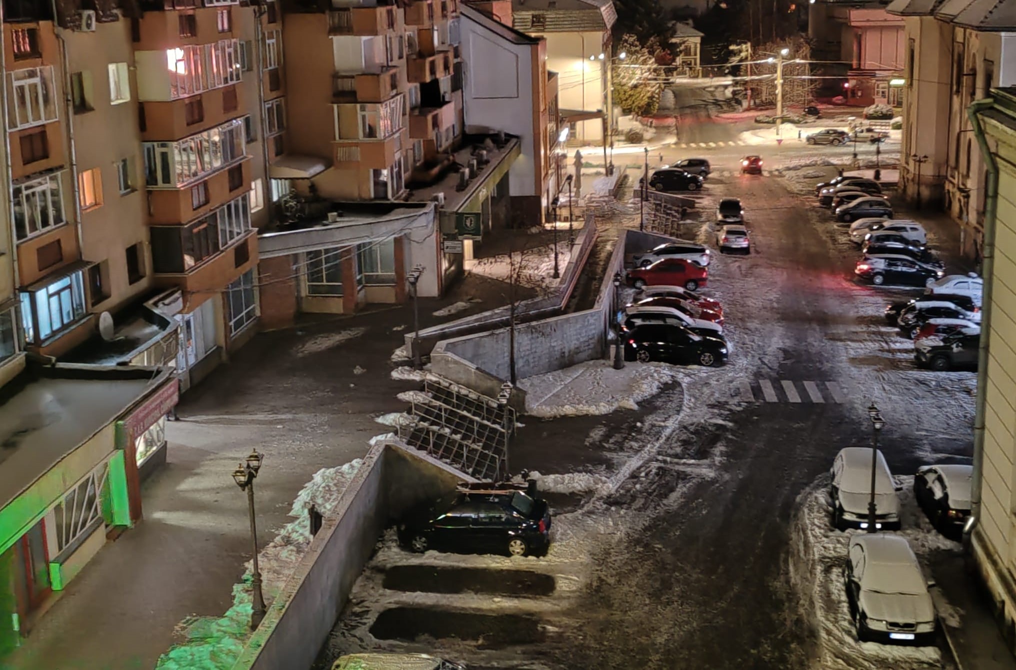 Noroc cu firmele luminoase. Iluminatul stradal oprit, beznă și ghețuș prin Câmpulung Muscel.
