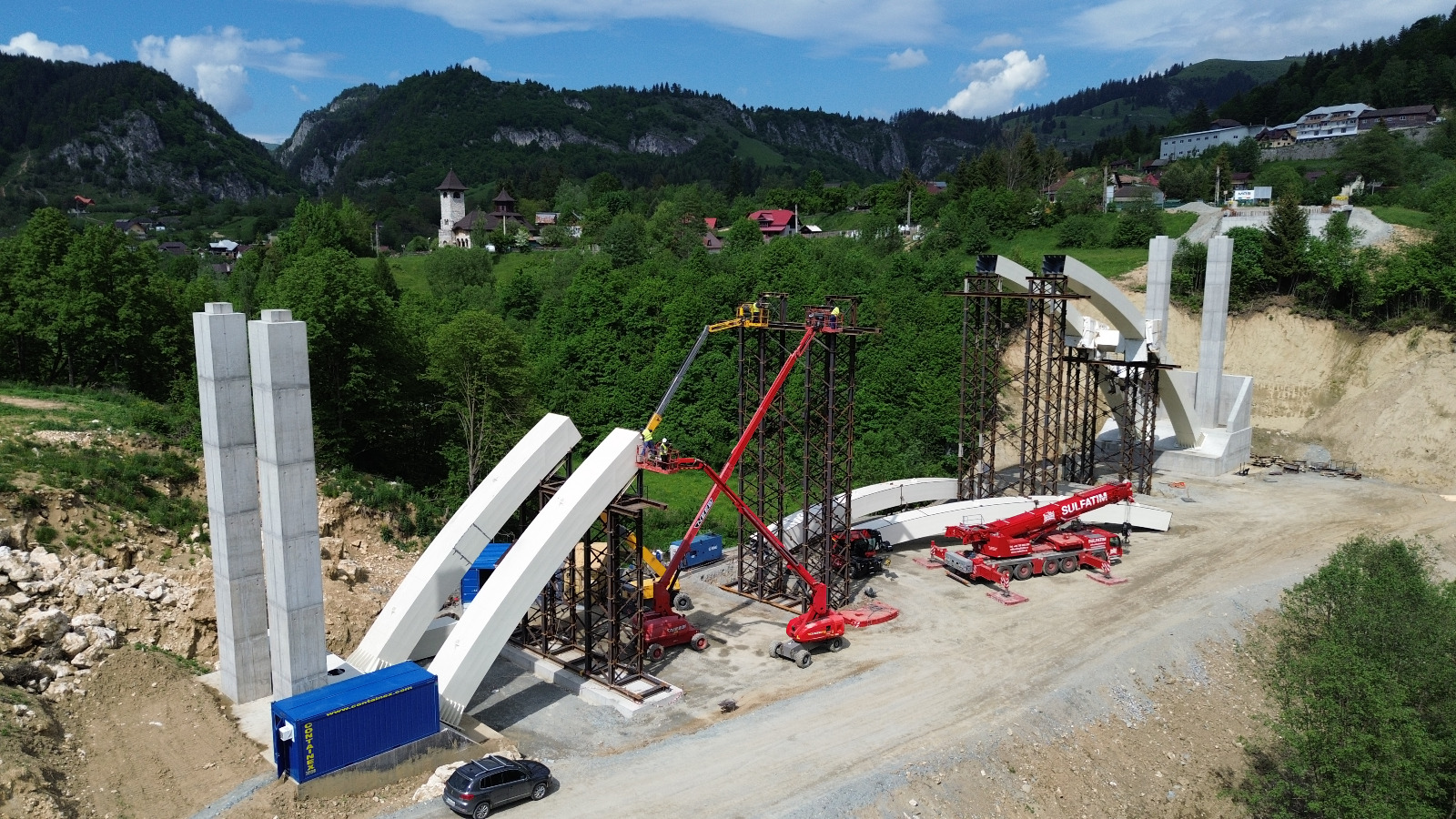 ,,Continuă lucrările la noul pod de tip arc metalic, cu calea sus, peste râul Dâmbovița de pe DN73, km. 78+519, din localitatea Podul Dâmboviței! În cadrul proiectului se vor amenaja și două intersecții la DN73 pentru accesul spre centrul localității Podul Dâmboviței.