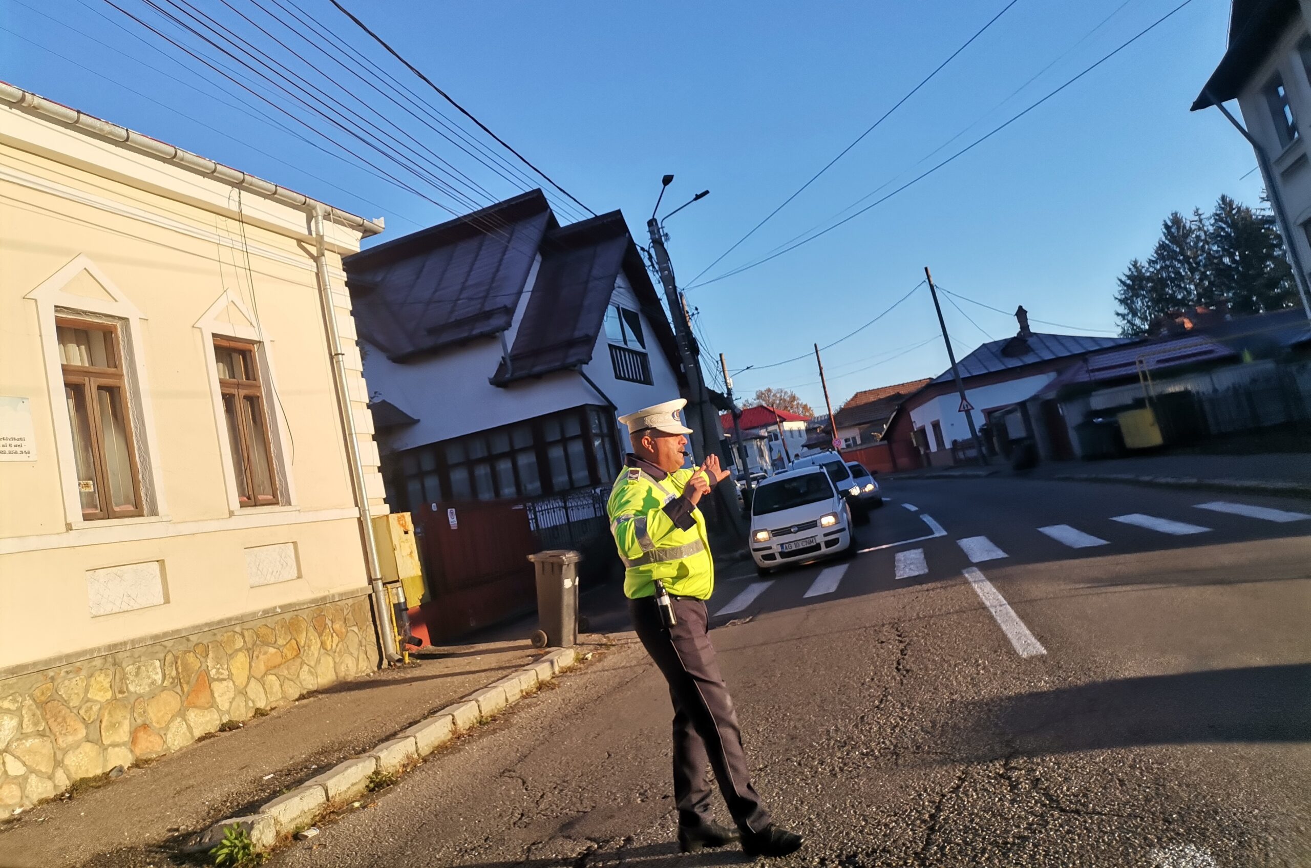 Nu mai putem circula pe străzile din Câmpulung Muscel, decât dirijat. Așa cum se poate vedea în fotografie. Ce e nasol că polițiștii locali trebuie să dea din mână și să fluiere în stradă multe ore, în loc să dea amenzi pentru nerespectarea multor interdicții din administrația publică locală.