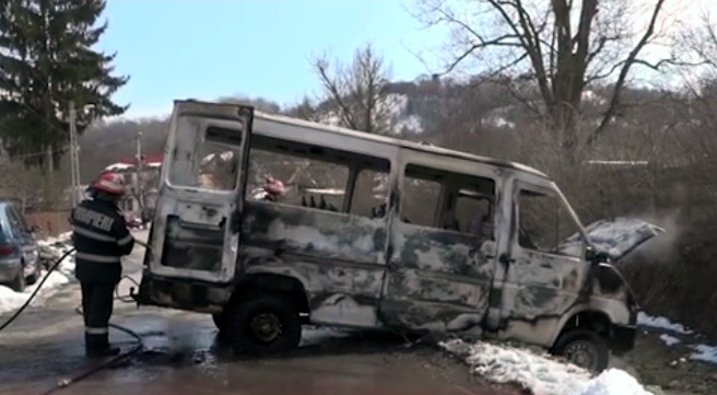 O autoutilitară a ars ca o torţă în curtea unei familii din Câmpulung. Panica a fost şi mai mare până când au ajuns pompierii să stingă focul care se putea extinde rapid la tot din jur.