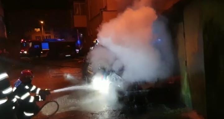 O mașină a ars ca o torță în plină stradă! După miezul nopții pompierii au fost chemați prin 112 să intervină pe strada Carpați din municipiul Câmpulung.
