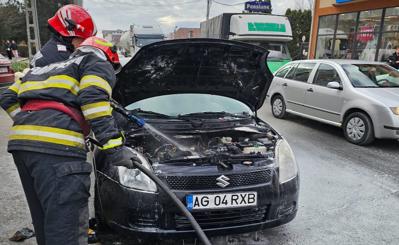 Posesorul mașinii s-a ales cu paguba și nu a existat pericolul ca incendiul să se propage la mașinile din zonă.
