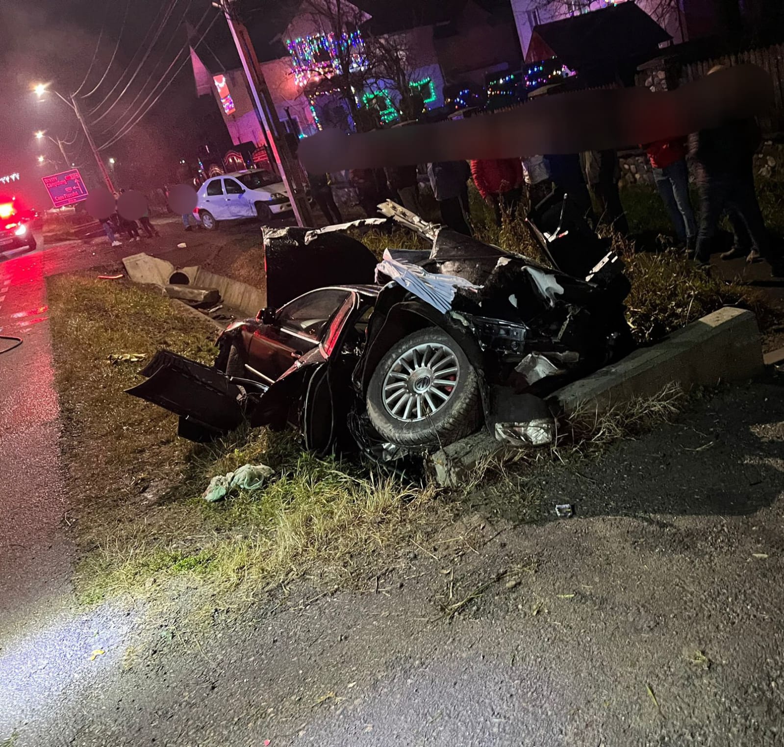 O mașină plină de tineri s-a făcut zob într-un cap de pod pe DN 73
