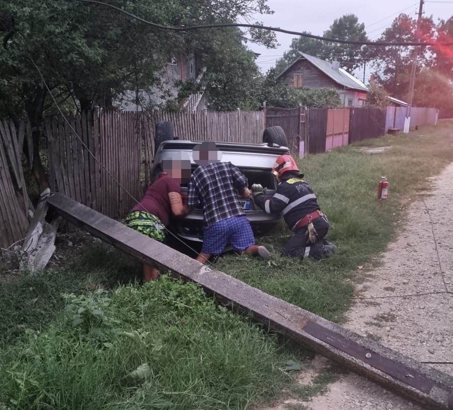O șoferiță tânără a rupt cu mașina un stâlp apoi a pus-o cu roțile în sus. Pompierii au intervenit în localitatea Râca în cazul unui autoturism care a intrat într-un stâlp de electricitate și ulterior s-a răsturnat.
