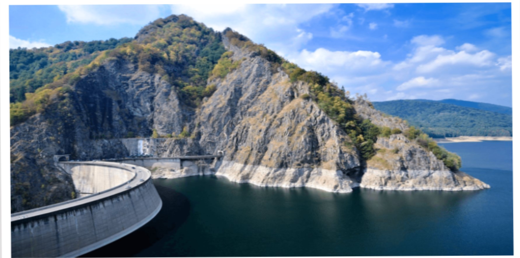 Lacul Vidraru de care beneficiază întreaga cascadă de centrale hidroelectrice din aval