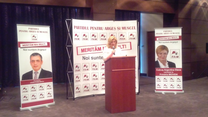 Șoc și groază pentru pesedisti! Au pierdut un om de valoare al Mioveniului dar și al județului. Argentina Culcuș cea care a pus bazele Centrului Educativ Mioveni și l-a făcut să fie cunoscut în toată țara, prin miile de spectacole pe care le-a organizat, sutele de cursuri pentru copii și tineri gratuit, va candida din partea Partidului pentru Argeș și Muscel, pentru primăria Mioveni. „M-am născut pe 17 octombrie 1973 în satul Mioveni. Copilăria mi-a fost distrusă de lamele buldozerelor care mi-au dărâmat casa și s-au făcut blocuri pe locul unde am crescut. Din anul 2003 am decis să intru în administrația locală, părăsind funcția de învățătoare, iar din anul 2005 am pus bazele unui centru cultural care s-a materializat tocmai în anul 2008. Am condus opt ani acest centru, am muncit pe brânci, am lipsit din viața mea de familie doar pentru a ridica cultura la Mioveni, pentru ca acest oraș să devină cunoscut. Acum am picat evaluarea anuală așa cum se întâmpla cu toți care trebuie să fie schimbați din funcție. Nu am stat să plâng ci am hotărât să merg mai departe pentru a-mi continua proiectele începute pentru oraș. Acest partid este al argeșenilor, nu ca altele unde se dictează de la București. Mulțumesc tuturor și Dumnezeu să ne ajute la toți”, a declarat Argentina Culcuș.