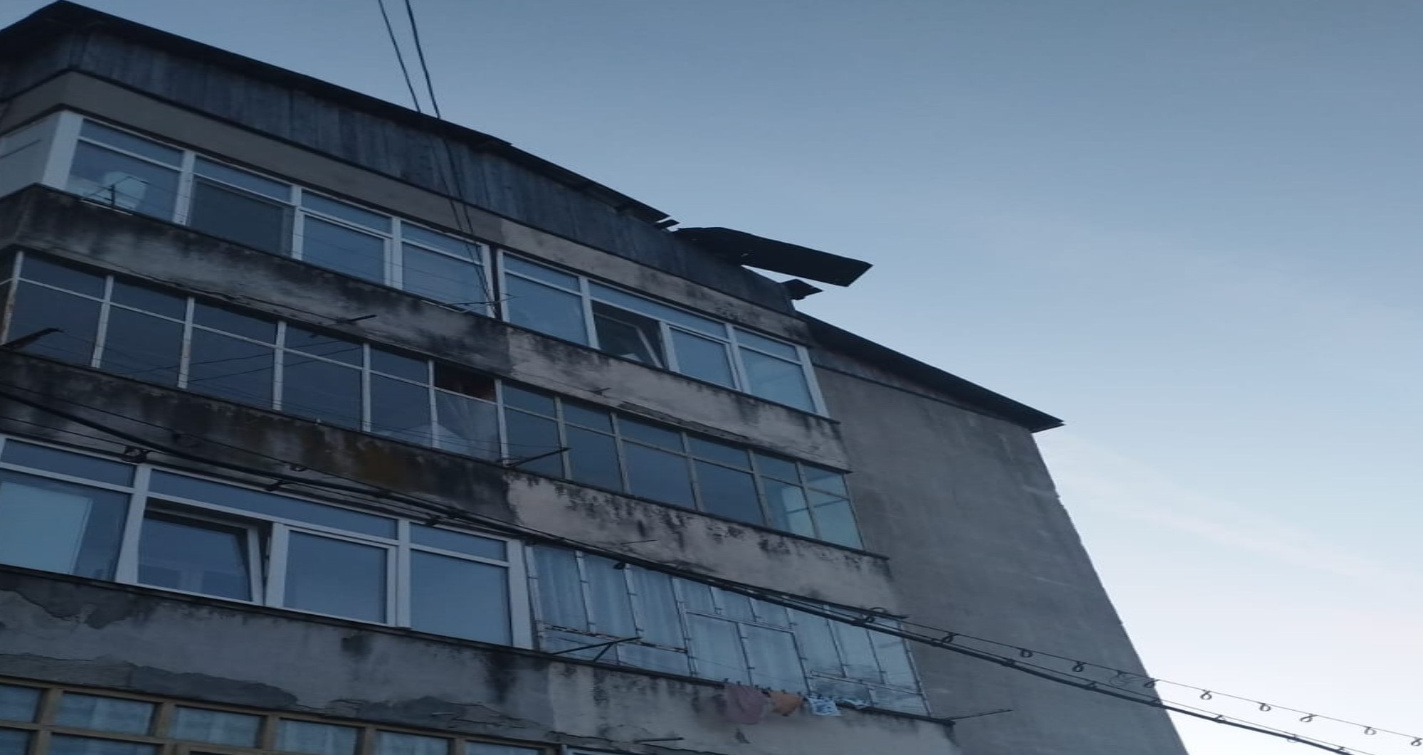 Pericol public într-un cartier al Câmpulungului Muscel! E dezastru! Tabla de pe acoperișul unui bloc este smulsă și stă să cadă. Se putea întâmpla o nenorocire, mai ales că sunt mulți localnici în zonă.