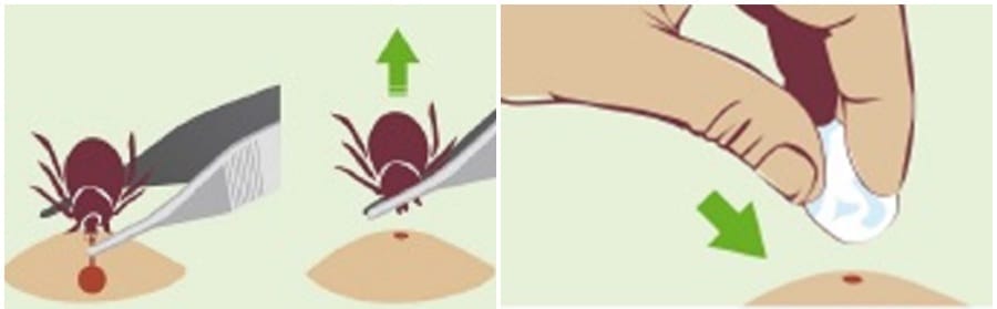 Se dezinfectează locul cu alcool. Folosind o lupă, se extrage cu penseta căpușa, trăgându-i capul și nu corpul.