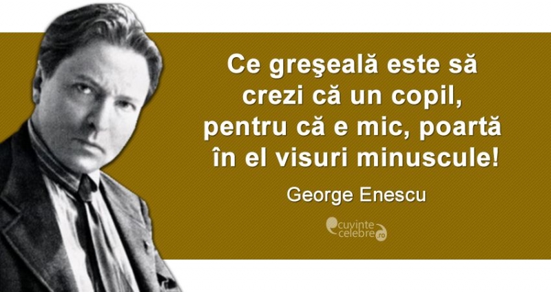 George Enescu (1881 – 1955) este considerat cel mai important muzician român, personalitatea sa artistică manifestându-se în multiple ipostaze: compozitor, violonist, pianist, pedagog și dirijor. Memoria marelui muzician român este perpetuată prin Festivalul Internaţional care-i poartă numele, prin diferite simpozioane desfăşurate în România şi în străinătate şi nu în ultimul rând prin expoziţii, concerte şi publicaţii realizate în cadrul Muzeului Naţional „George Enescu” din Bucureşti. George Enescu rămâne în istorie drept unul dintre cei mai de seamă oameni de cultură ai secolului XX; şi-a asumat rolul de ambasador al muzicii atât în ţară, cât şi în lume şi s-a implicat în promovarea muzicii româneşti, contribuind la recunoaşterea internaţională a compozitorilor, dirijorilor şi interpreţilor din România. „Romantic şi clasic prin instinct, m-am străduit să împreunez în toate lucrările mele o formă de echilibru care îşi are linia ei lăuntrică bine definită.” (G. Enescu în ziarul „Dimineaţa”, 1936) Sabina BUSUIOC
