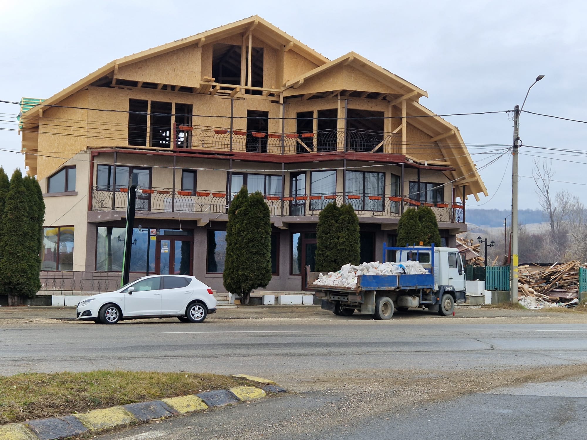 Pensiunea Popas Poiana venea în întâmpinarea turiștilor cu 10 camere, acum se mai toarnă în etaj. De la sfârșitul anului se lucrează de zor.