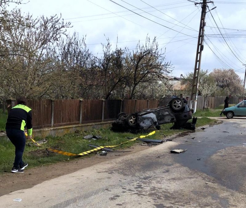 În urma coliziunii, al doilea autoturism (cel condus de tânăr), s-a răsturnat în afara carosabilului și a luat foc.