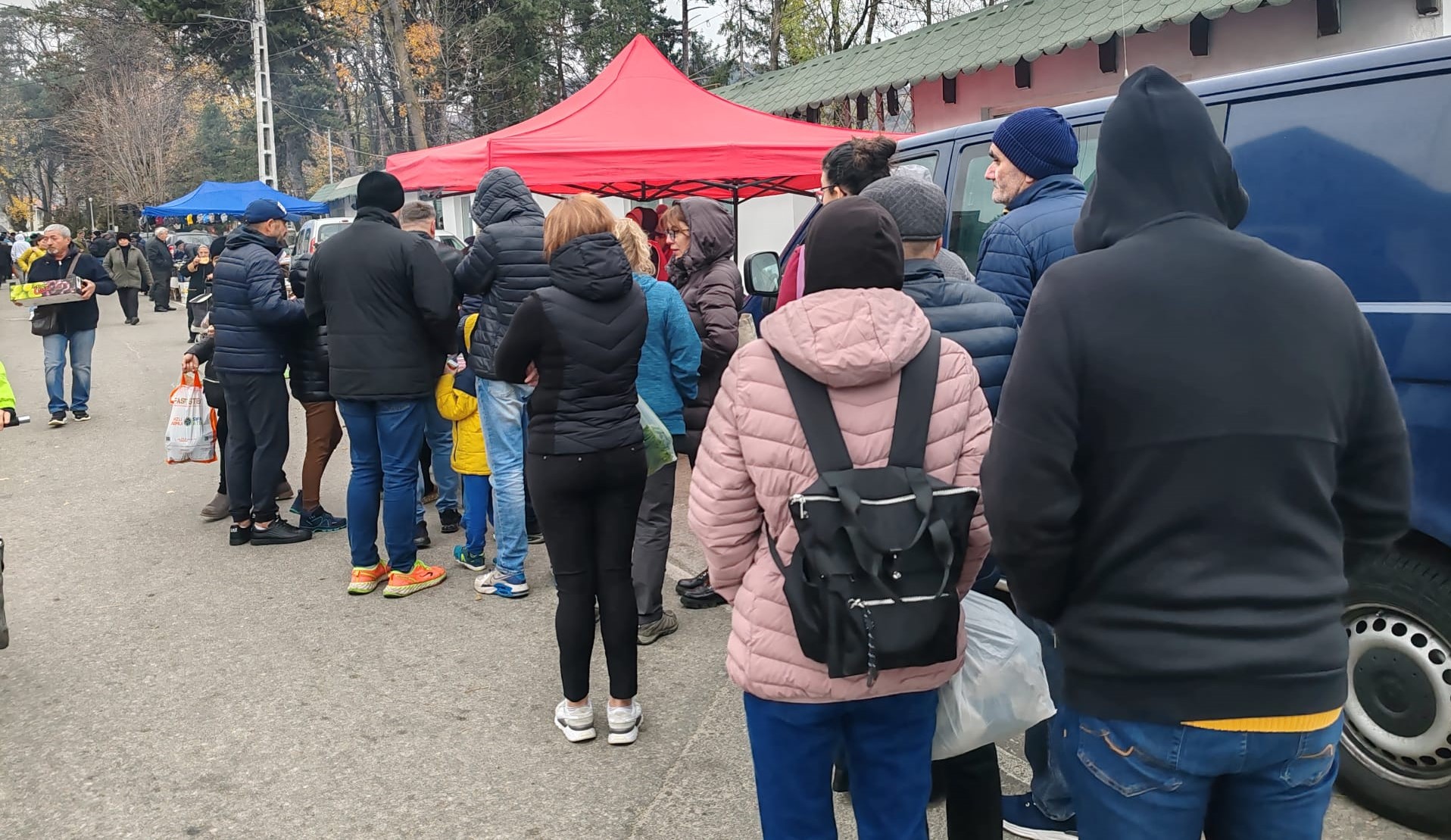 Sunt vânzători ambulanți. Vin la acest târg de mai bine de 32 ani. Vând numai gogoși simple. Și oamenii stau la coadă mai ceva ca pe vremea lui Ceaușescu.