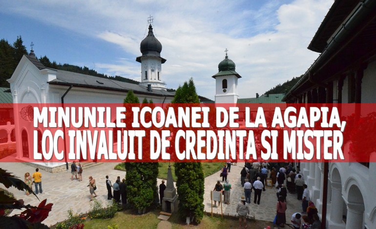 Multe, multe ghivece cu mușcate te întâmpină la Mânăstirea Agapia. Peisajul este unul inedit ce te determină se te mai întorci ori de câte ori ai ocazia. Creștinii care se roagă la Icoana Maicii Domnului de la Agapia se luminează în credință, această icoană parcă fermecată având o putere de vindecare uluitoare. Potrivit arhimandritului Ioanichie Bălan, icoanele frumos sculptate de la Agapia, printre care și cea a Maicii Domnului, sunt „vindecătoare de boli, izgonitoare de duhuri rele, iar altele sunt aducătoare de ploi binecuvântate și protectoare ale mănăstirilor și familiilor credincioase”. Icoana făcătoare de minune de la Mănăstirea Agapia, în care Fecioara Maria îl ține pe Iisus în brațe, are o poveste foarte interesantă. Se spune că această icoană este una de procesiune și că ar fi rezistat veacurilor. A fost folosită la procesiunea de pe zidurile Constantinopolului, la atacul perșilor. Icoana vindecă boli, suferințe interioare, îi curăță pe oameni de gândurile rele și îi lipsește de păcatul deznădejdi
