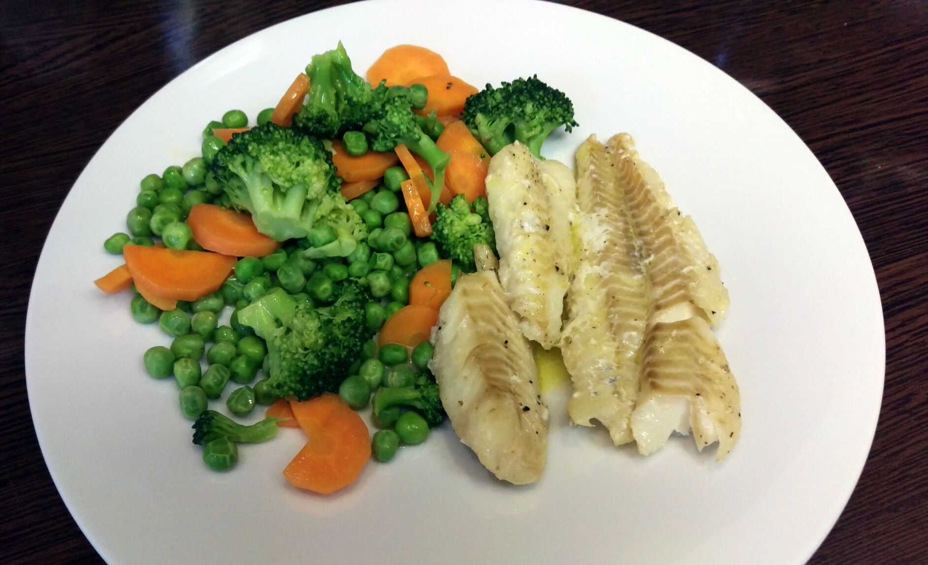 Ai nevoie de: 4 trunchiuri sau 8 fileuri de cod, 3 morcovi mijlocii, 2 tulpini de țelină cu frunze, 2 cartofi mari, 2 roșii, 100 ml ulei de măsline, 50 ml zeamă lămâie, sare, piper.