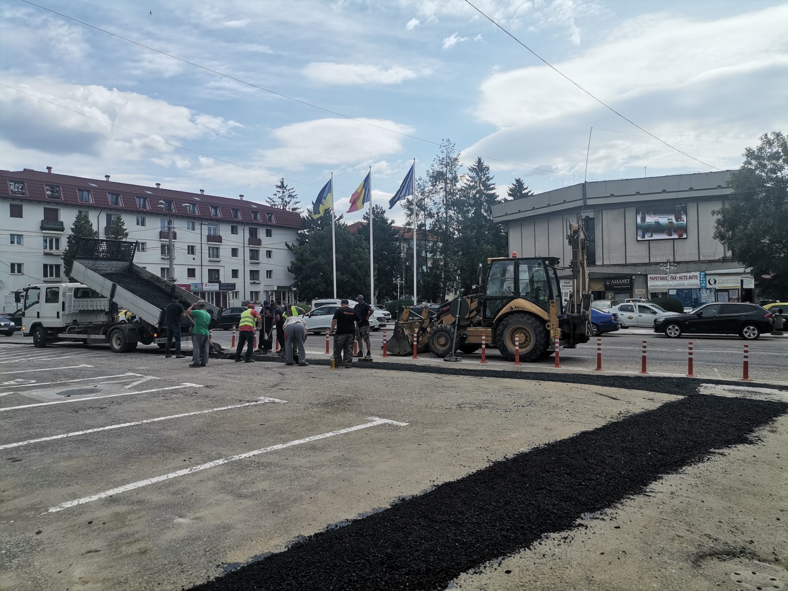 Asta pentru zona centrală va fi reabilitată total în cadrul unui nou proiect. Se toarnă covoare asfaltice în zonele care erau acoperite de pământ mai ales că încep zilele orașului care vor dura timp de o săptămână.
