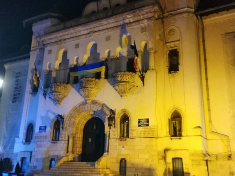 SEMN de SOLIDARITATE. Nu a fost iluminată în culorile drapelului, a fost doar expus… Mai multe clădiri, din întreaga țară, au fost iluminate, în galben și albastru, culorile ce se regăsesc pe drapelul Ucrainei.