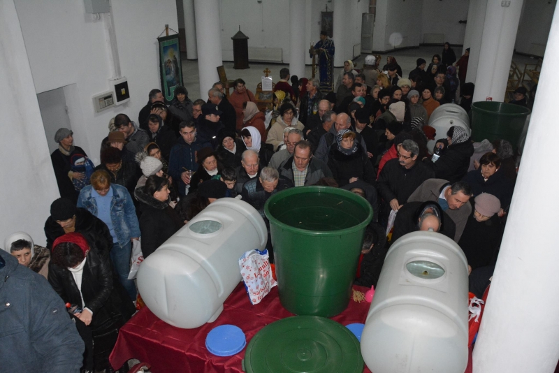 La toate bisericile din Mioveni au avut loc slujbe religioase, fiind pregătite butoaie sau cazane mari cu apă sfinţită pentru credincioşi.