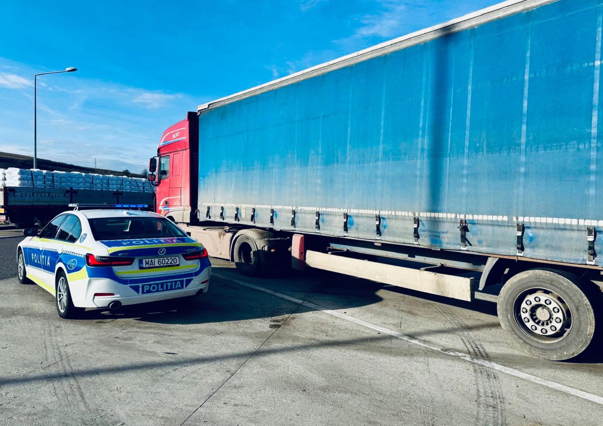 Șoferul a fost sancționat contravențional cu o amendă în valoare de 4.000 de lei, conform OG 37/2007, fiind dispusă și măsura imobilizării ansamblului rutier.