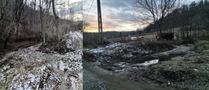 Peste pârâu era de ani buni un podeţ din lemn. S-a stricat, iar în locul lui autorităţile din localitate au pus două tuburi din beton, care s-au umplut de crăci şi bolovani şi ce a mai adus apa de pe dealurile din zonă, aşa că au fost scoase. Improvizaţiile au fost la ordinea zilei la trecerea peste pârâul respectiv, iar problemele nu au continuat să apară.
