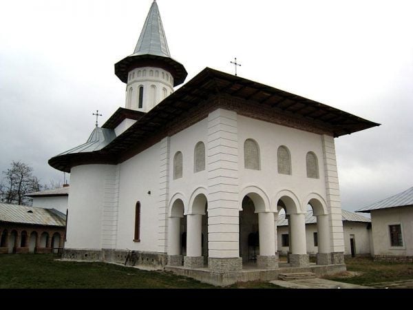 Biserica este în formă de cruce, cu ziduri groase din cărămidă, cu o singură turlă, pe naos. Clădirile chiliilor înconjoară biserica, ele având rol și de ziduri împrejmuitoare.