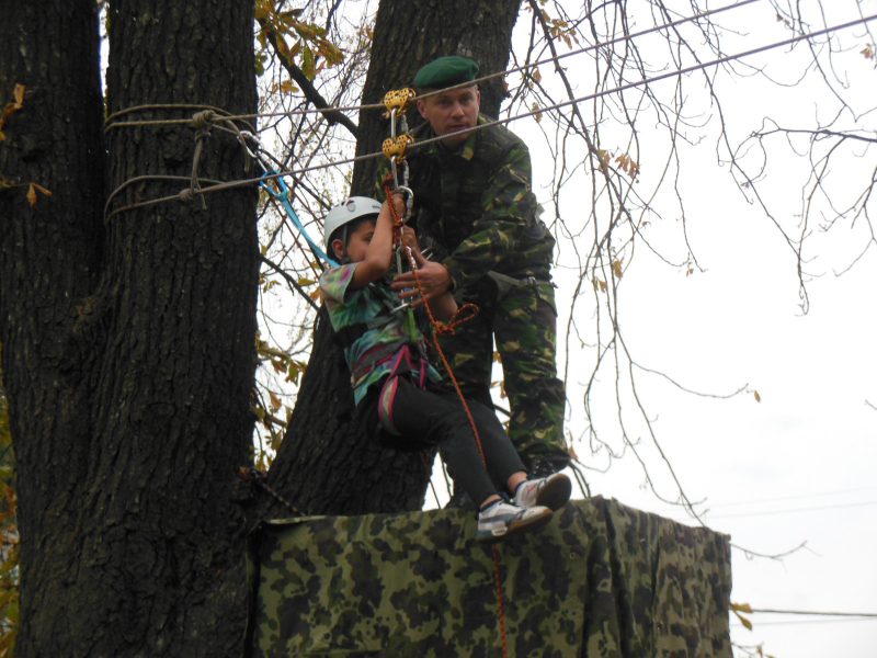 Vânătorii de munte, au montat astăzi o tiroliană, pentru că nu au avut timp de alte pregătiri în Grădina Publică.
