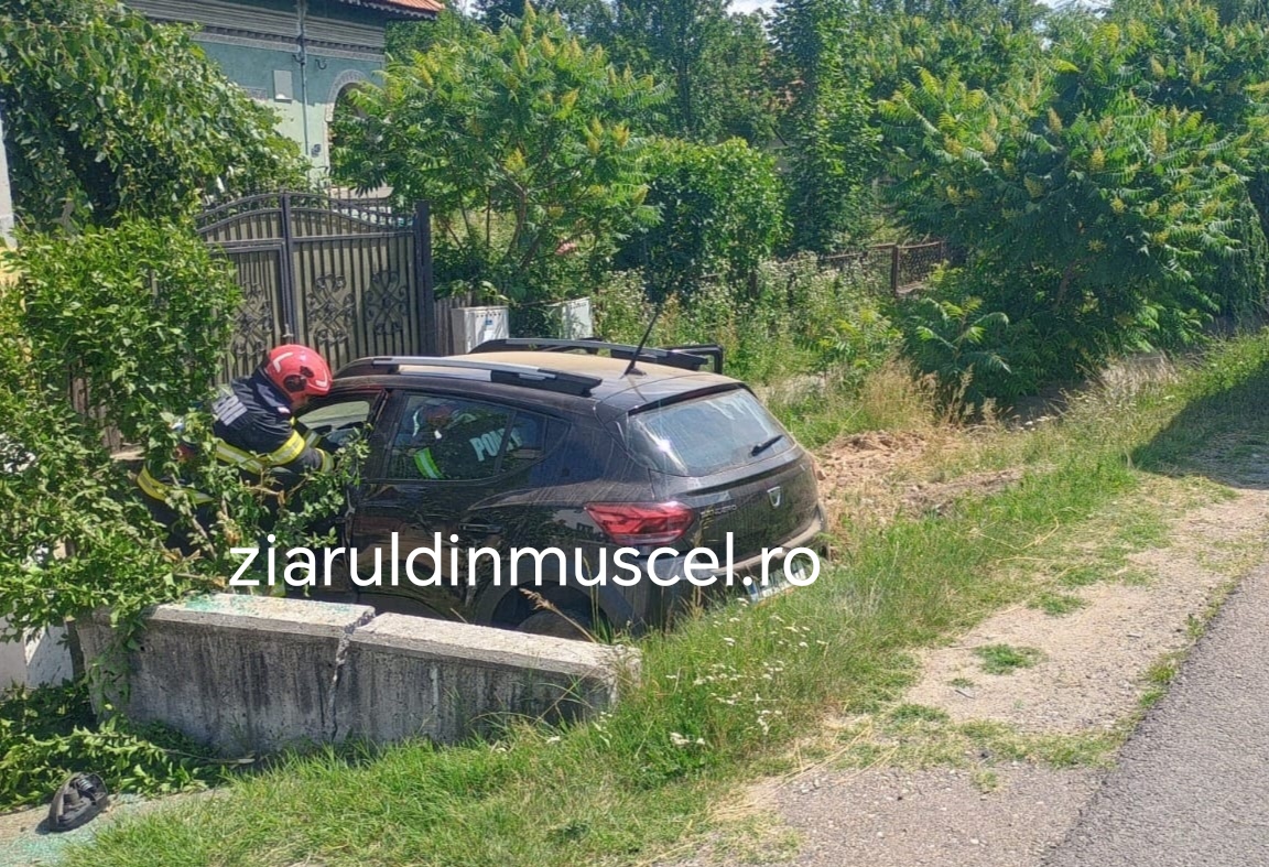 Un autoturism marca Sandero s-a izbit de un cap de pod și a sărit peste rigolele betonate. A rupt capul de pod și s-a oprit în gardul unei gospodării.
