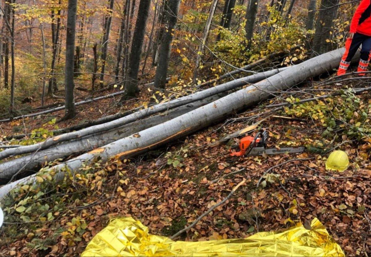 TRAGEDIE. Bărbat omorât de căderea unui lemn, într-o pădure. Se pare că ar fi fost lovit în zona capului.