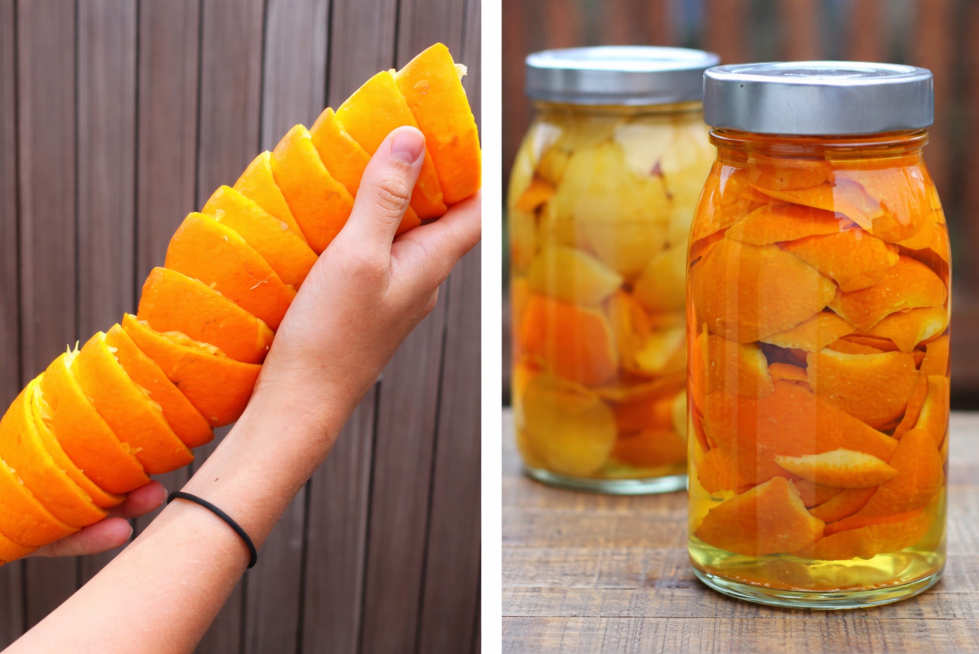 Prepararea amestecului este simplă: cojile de portocală se pun într-un borcan de sticlă, peste care se toarnă oțet alb, până la acoperirea completă. Recipientul se lasă la infuzat timp de aproximativ două săptămâni, într-un loc ferit de lumină, pentru ca uleiurile esențiale să se elibereze în lichid.