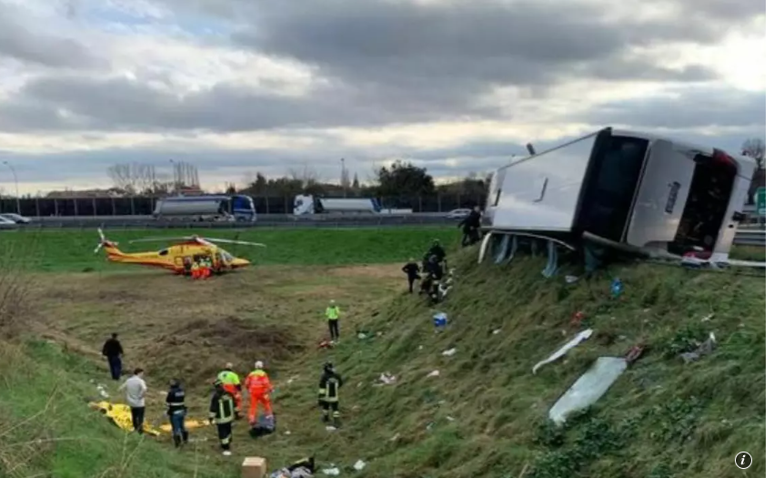 Citeşte întreaga ştire: Un autocar cu 52 de români s-a răsturnat pe o autostradă din Italia. 22 de persoane, transportate la spital