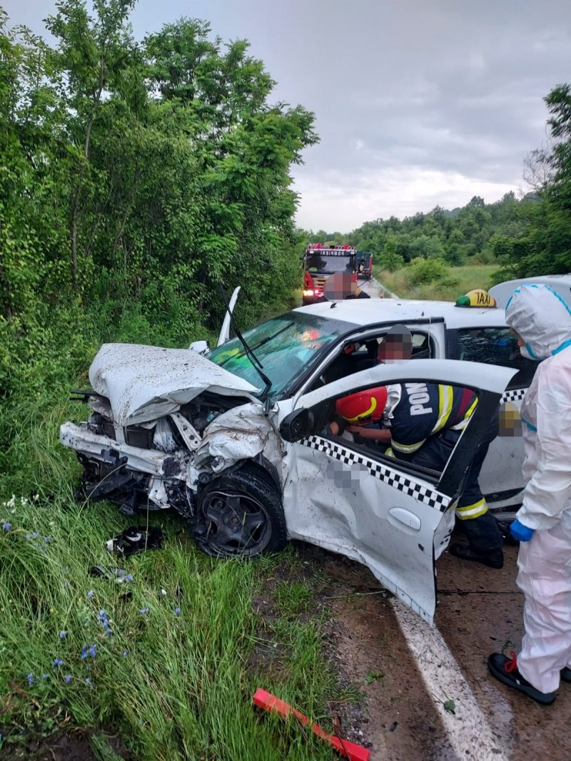 În urma accidentului, șoferul autoturismului a rămas blocat în mașină. A fost extras, preluat de echipajele medicale și transportat la spital.