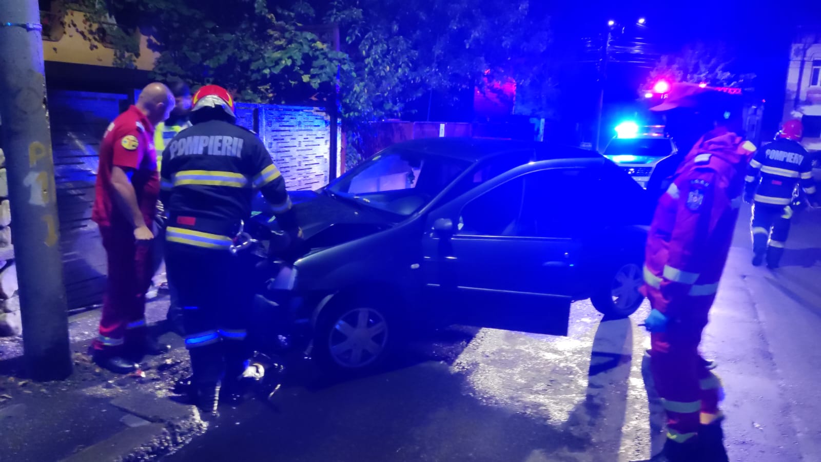 De asemenea s-a deplasat și echipajul SMURD. Tânărul, se pare că, a pierdut controlul asupra mașinii, carosabilul era ud, iar mașina a derapat.