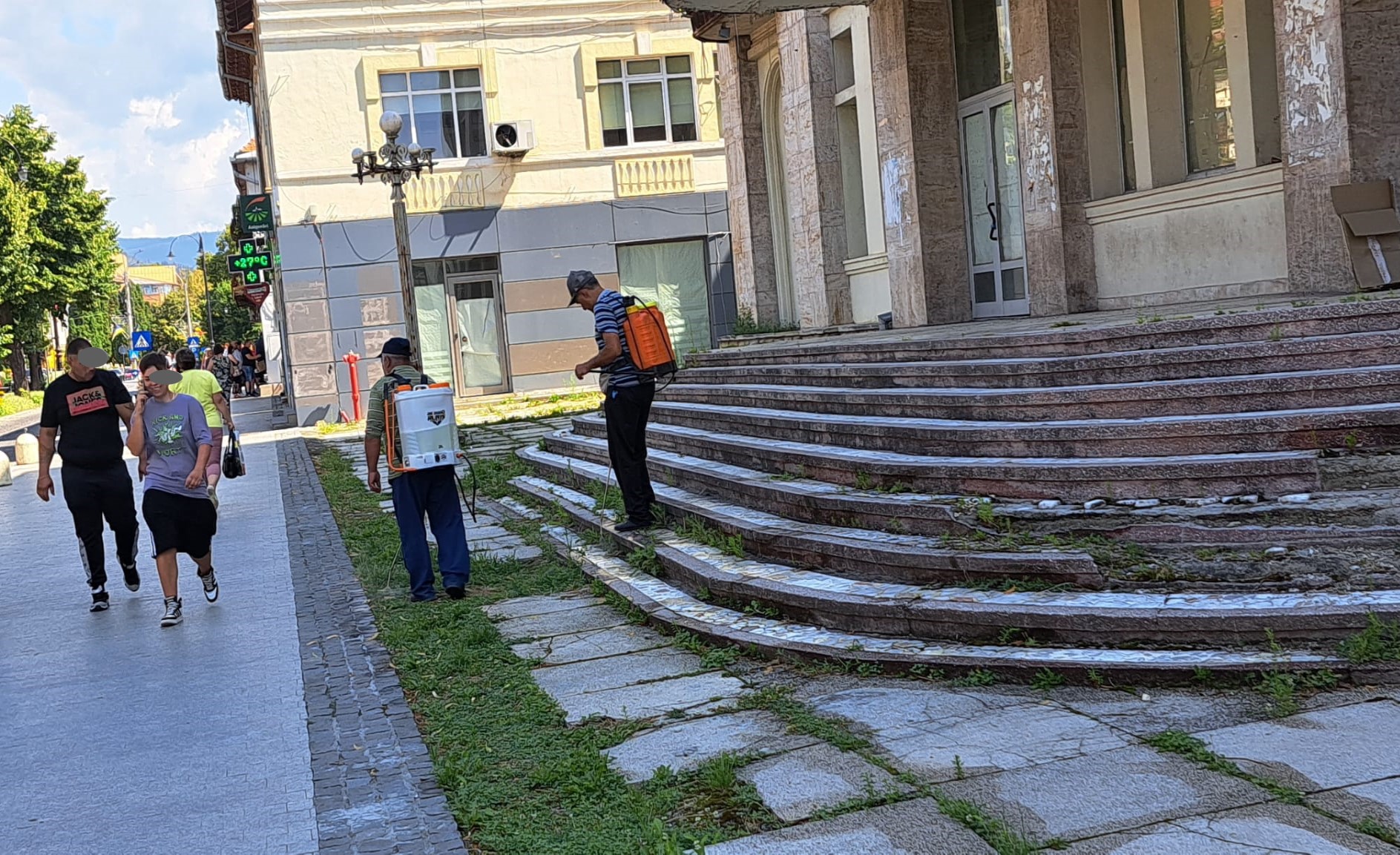 În realitate lucrurile nu stau deloc așa, ori firma care a prins contractul cu primăria Câmpulung, împrăștie apă de la robinete. De exemplu, ieri câțiva oameni cu sculele la spinare au dat cu substanțe printre oameni pe Bulevardul Pardon.