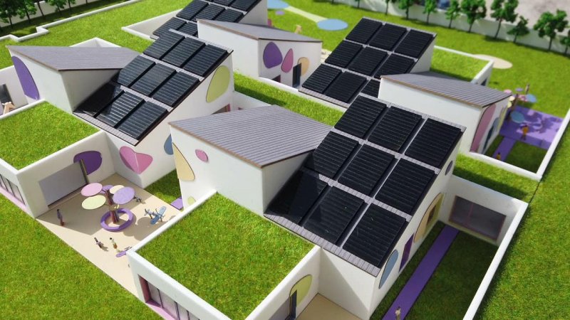 Pe acoperiş se vor amenaja spaţii verzi, terase înverzite, panouri fotovoltaice pentru a asigura energia necesară şi a avea un aport de energie verde în funcţionarea creşei. Geamurile, uşile, pereţii şi podeaua vor fi bine izolate, construite cu cele mai noi tehnologii şi încălzirea, respectiv răcirea clădirii se va face prin pompe de căldură.