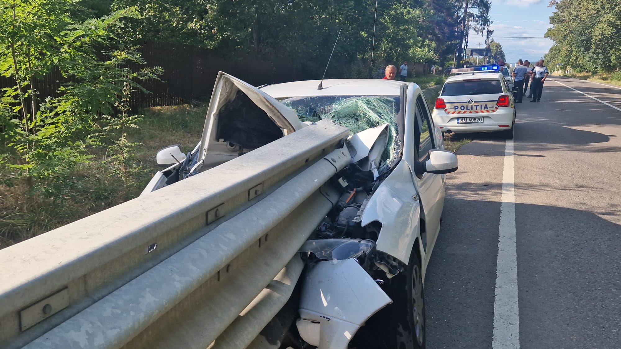 După ce a trecut de dispensarul din centrul comunei, mașina s-a înfipt la propriu în glisiera de pe marginea drumului.