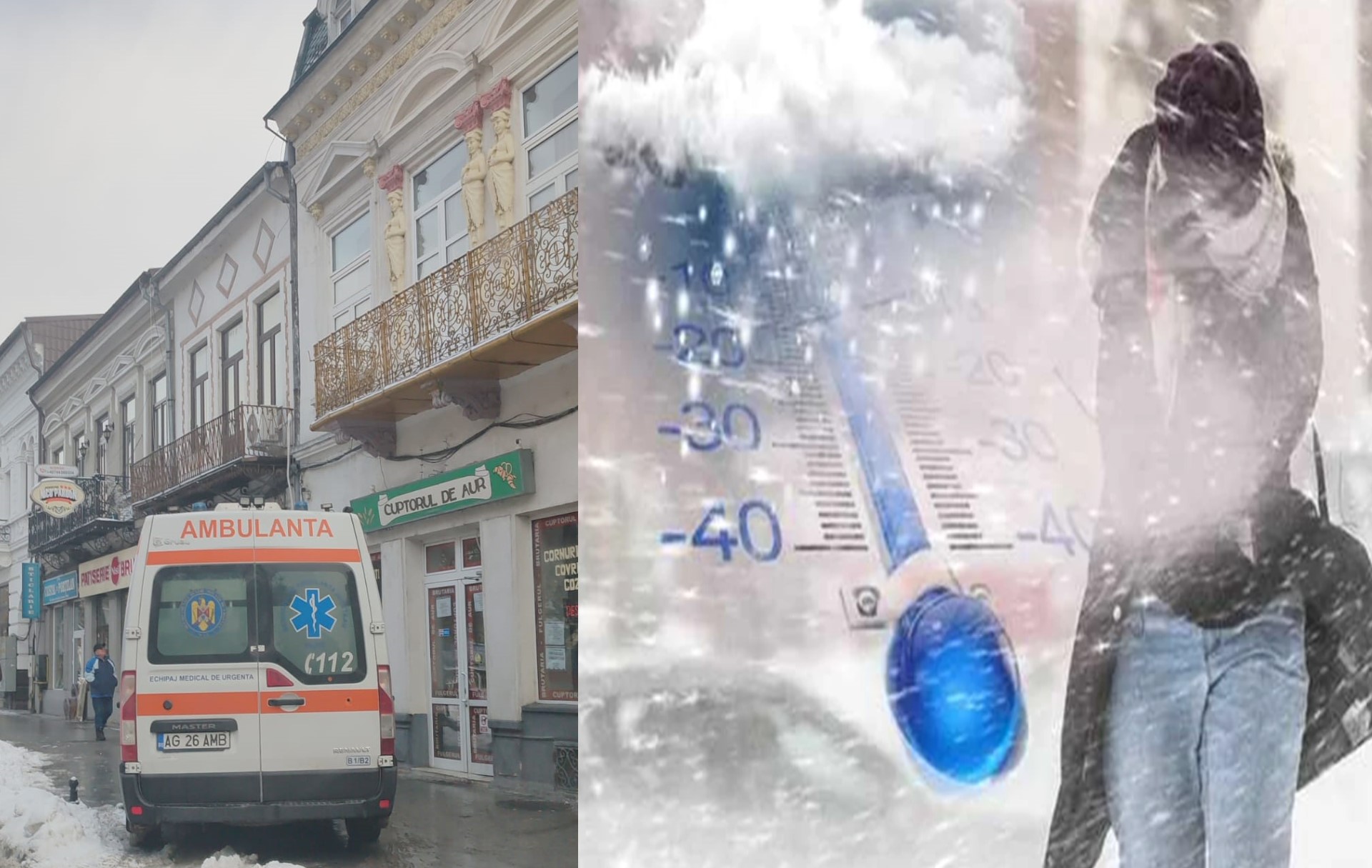 Ger năprasnic la Câmpulung Muscel: ambulanța chemată de urgență după ce două persoane au căzut pe stradă.