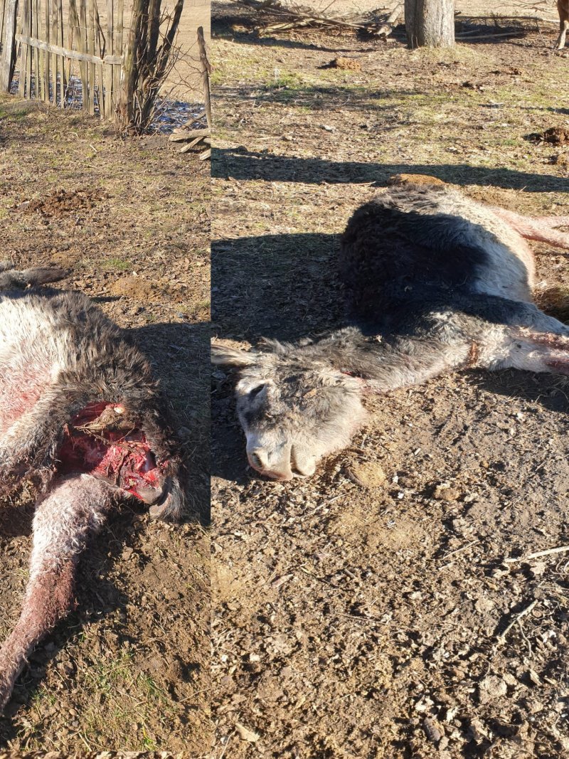 Astăzi, la primele ore ale dimineții, lupii au atacat în gospodăria lui Emil Mușetescu și au sfârtecat o oaie și o măgăriță care nu au mai putut fi salvate, a fost mâncată carnea după ele până la os.