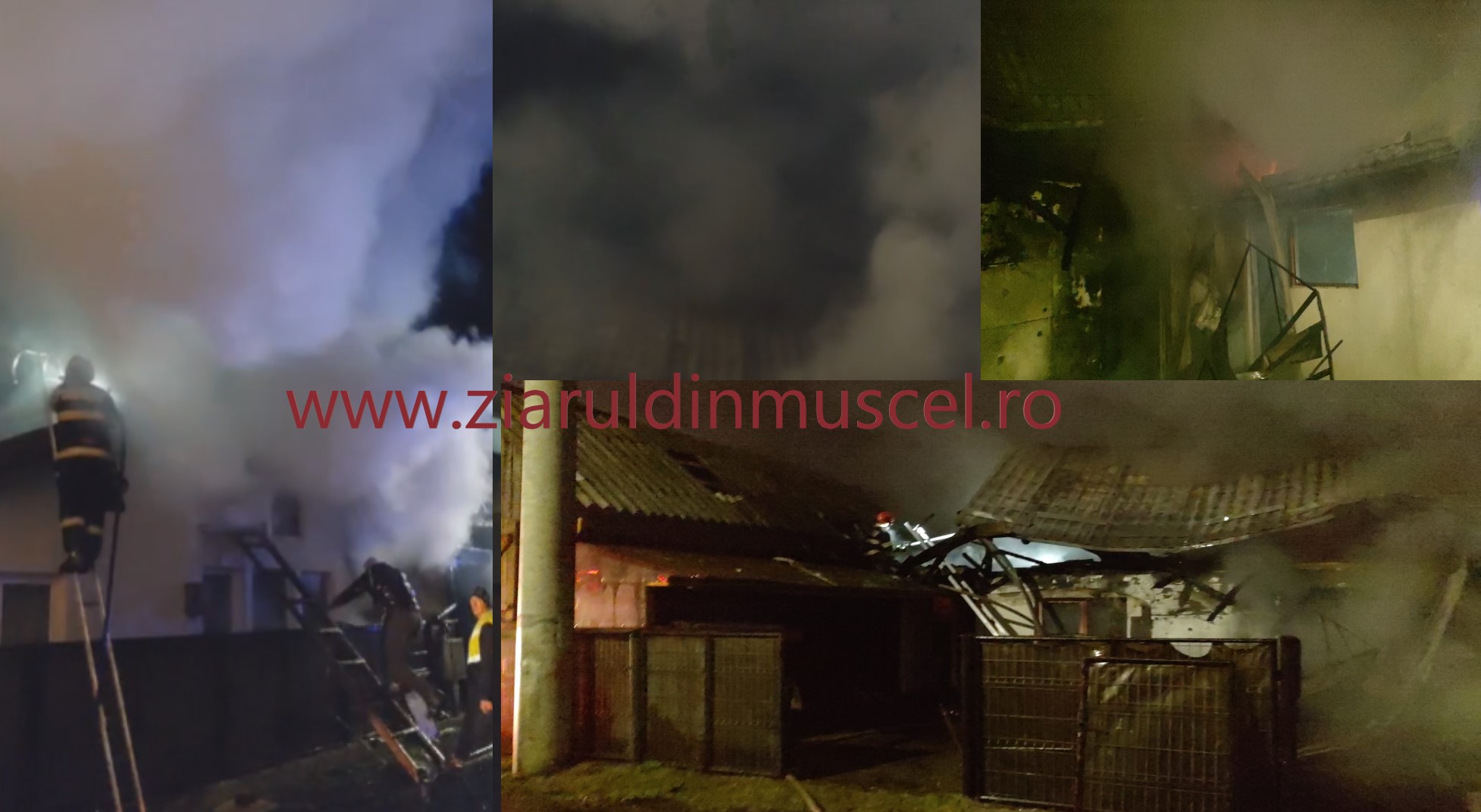 VIDEO. Nenorocire la miezul nopții în Rucăr. O casă cu anexe a ars ca o torță! S-a făcut totul scrum