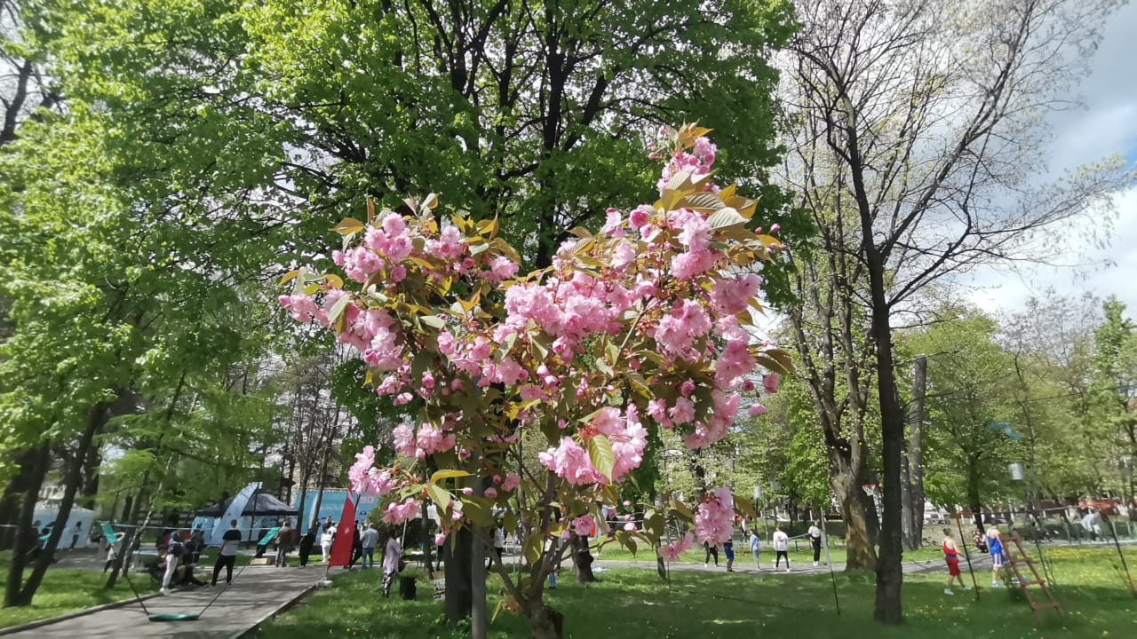 VIDEO. Uimitor. Au înflorit Cireșii Japonezi dintr-un parc al Câmpulungului.