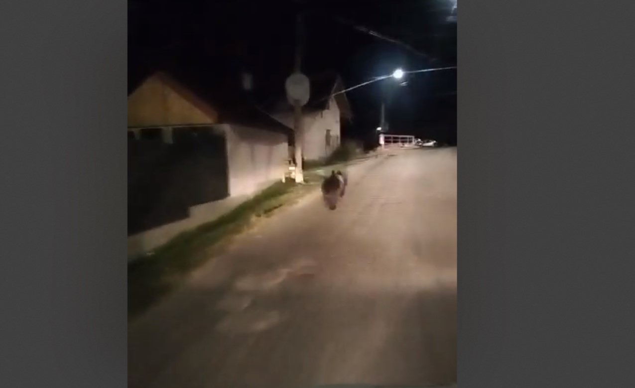 VIDEO. Ursul filmat azi noapte alergând pe o stradă din Câmpulung