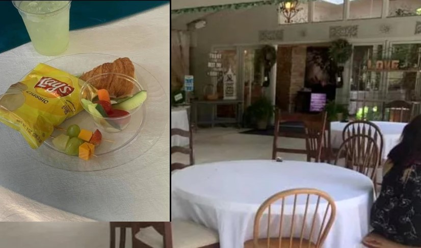 Domnișoara de onoare a scris: „Primim „mâncarea” noastră, care era o jumătate de sendviș, croissant, fructe pe băț, legume și o pungă de chipsuri. Niciunul dintre scaune nu s-a potrivit cu celălalt… părea doar o mizerie”, potrivit Mirror.
